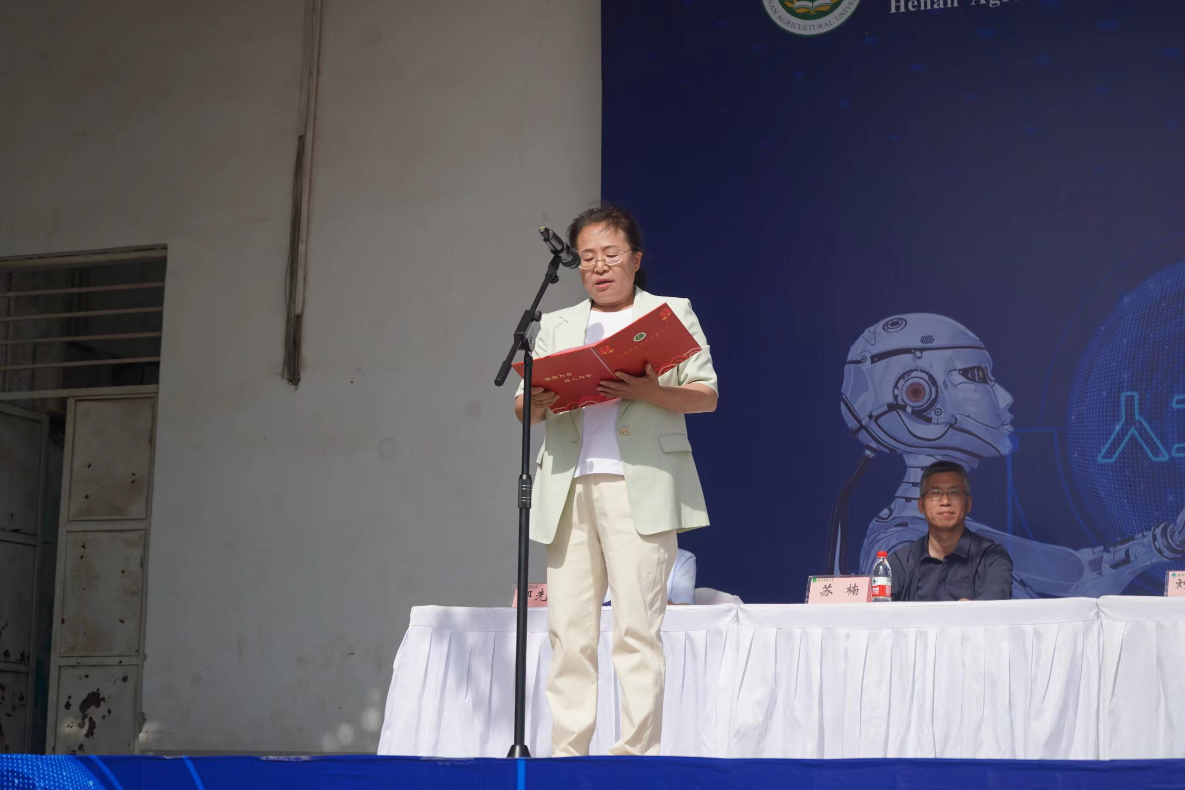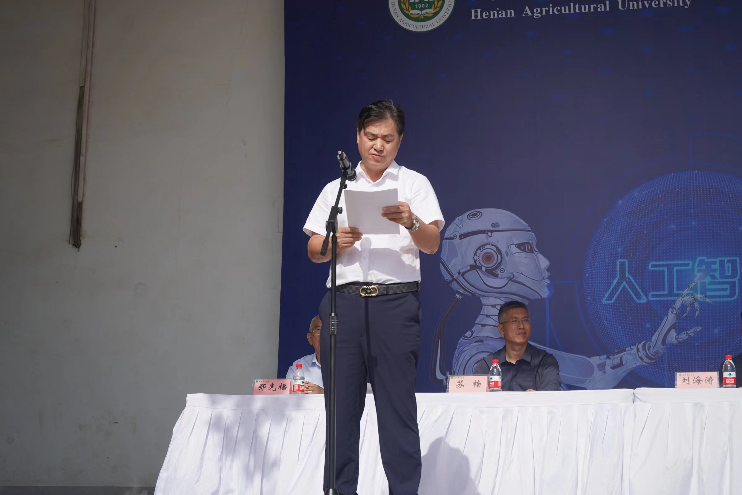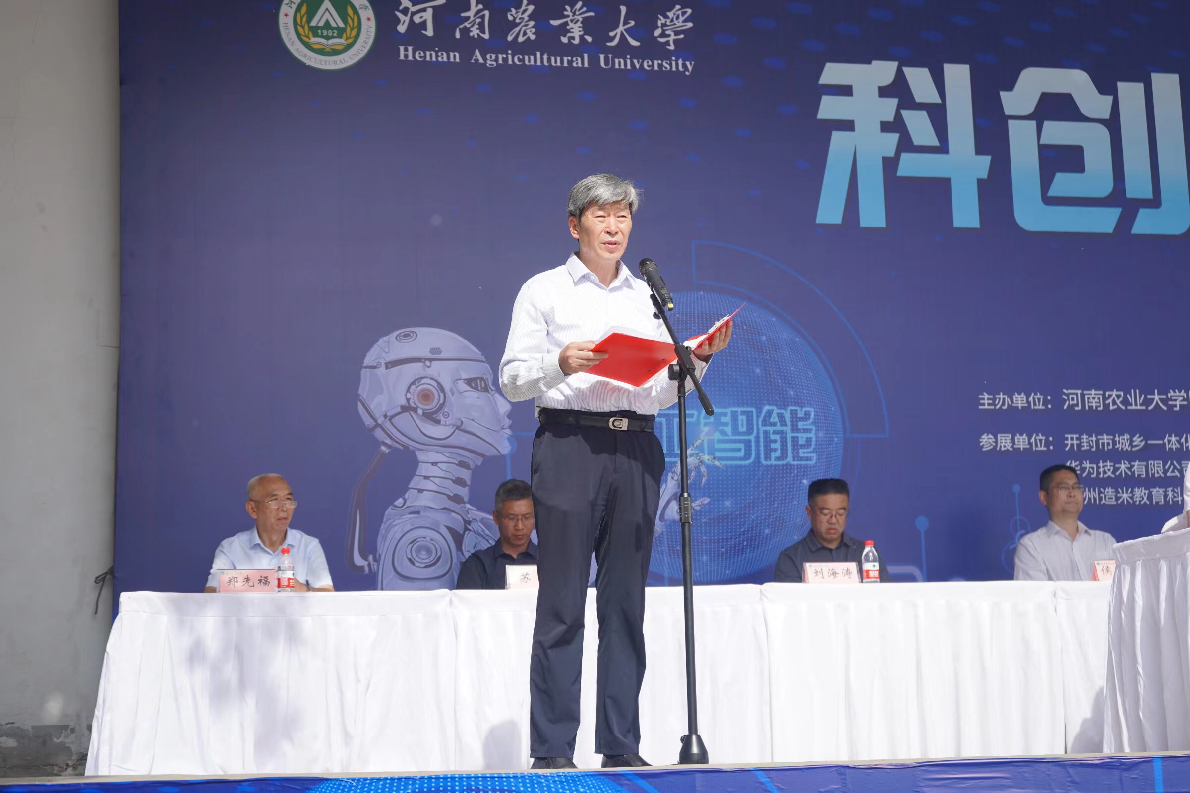 河南农业大学附属中学校长田随凤、有关合作代表及支持单位代表中国网杯人工智能创新大赛组委会副主任赵立国、河南农业大学副校长杨喜田先后发表致辞。河南省教育厅人才与科普处处长邢宇辉宣布活动开幕。