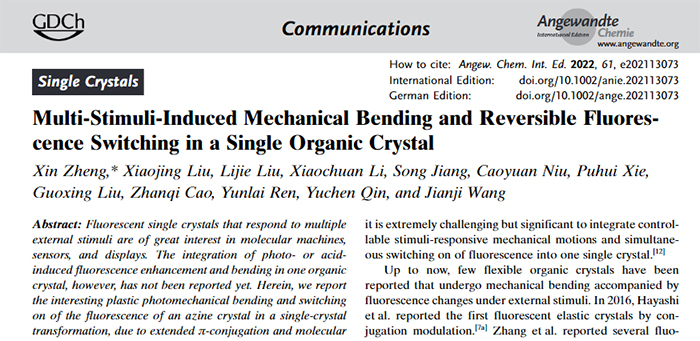研究成果以“Multi-Stimuli-Induced Mechanical Bending and Reversible Fluorescence Switching in a Single Organic Crystal”为题,发表在国际化学著名期刊《Angewandte Chemie International Edition》上。中文成人视频