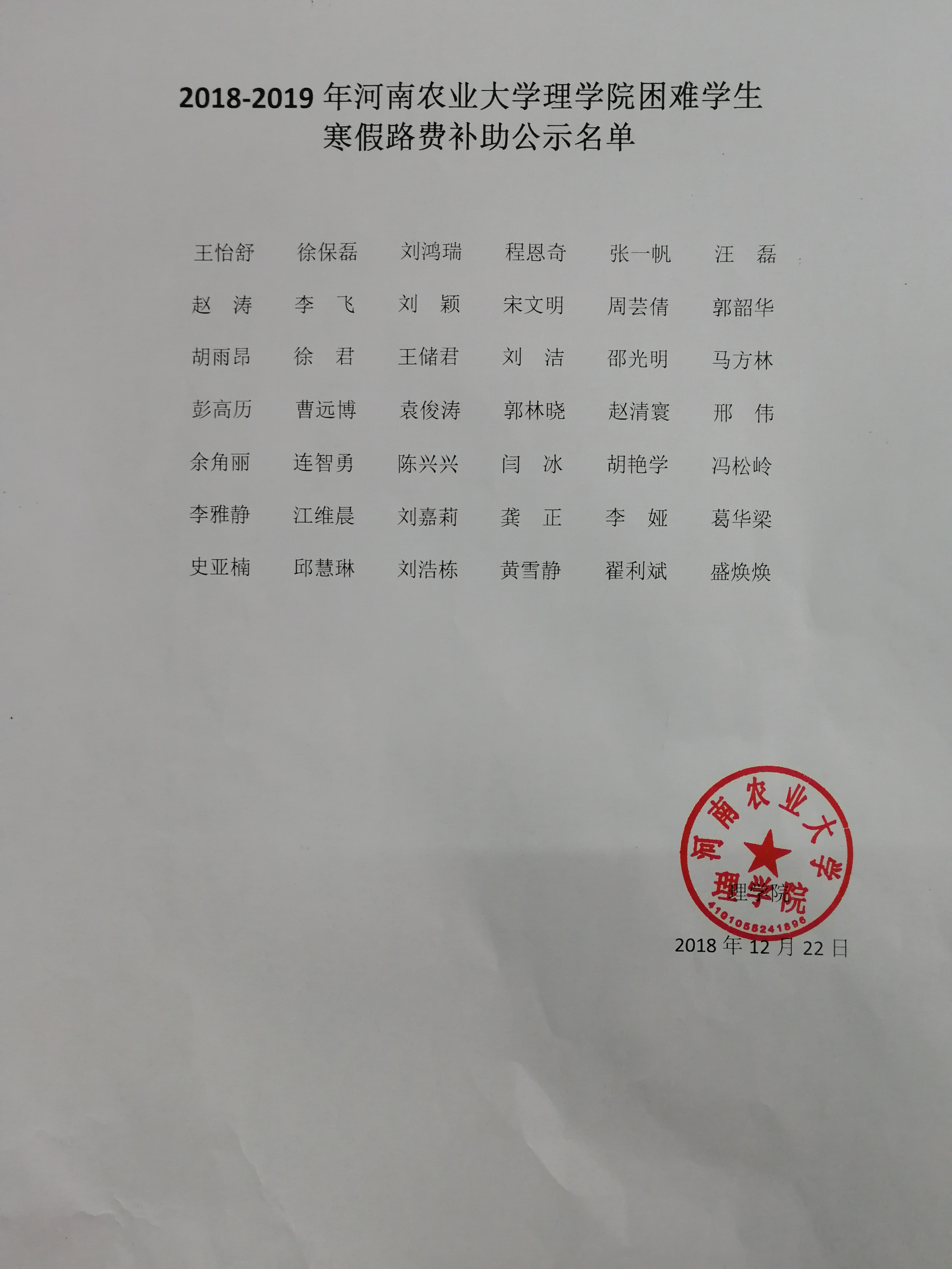 2018-2019年中文成人视频 困难学生寒假路费补助公示名单