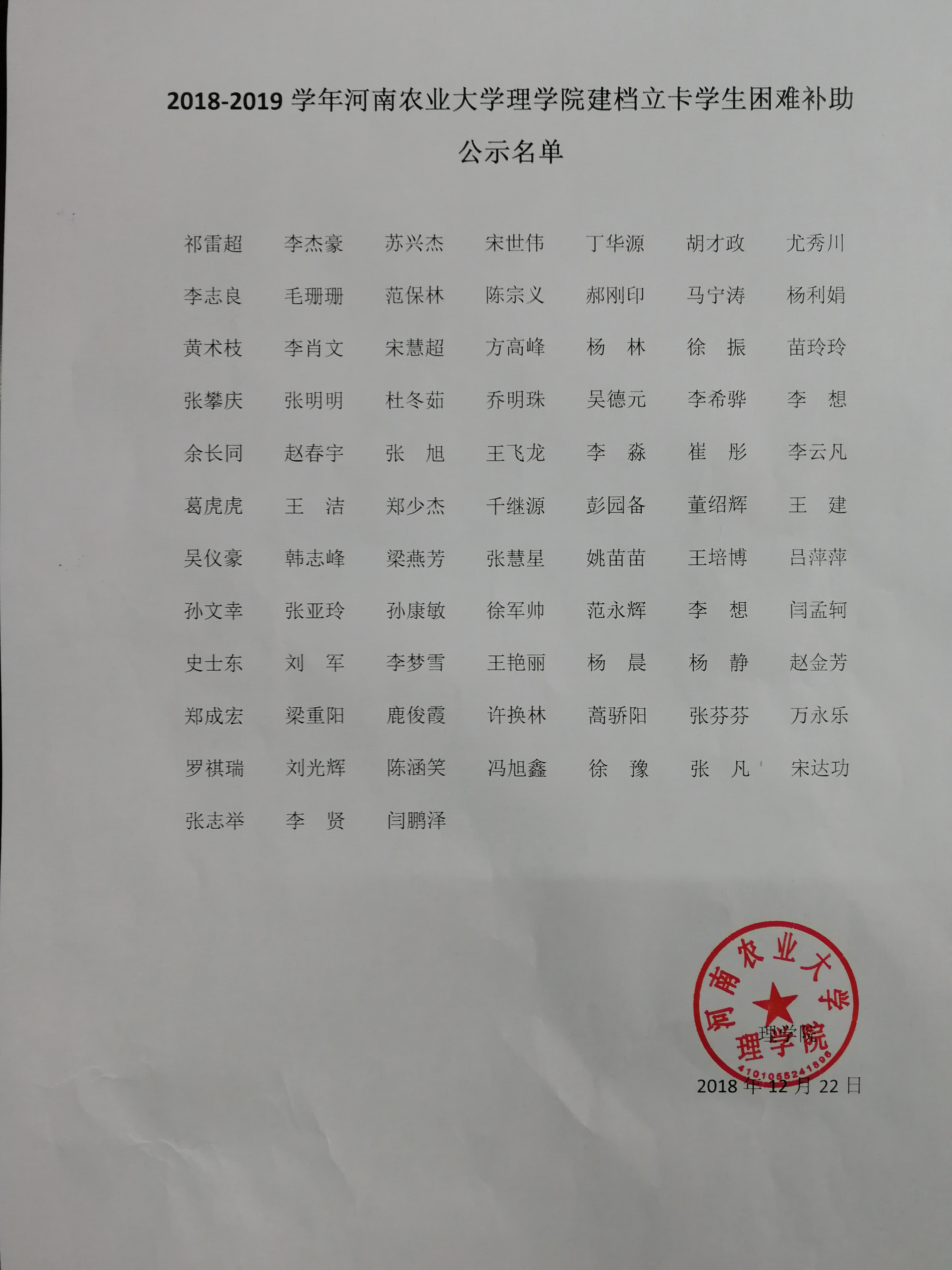2018-2019学年中文成人视频 建档立卡学生困难补助公示名单