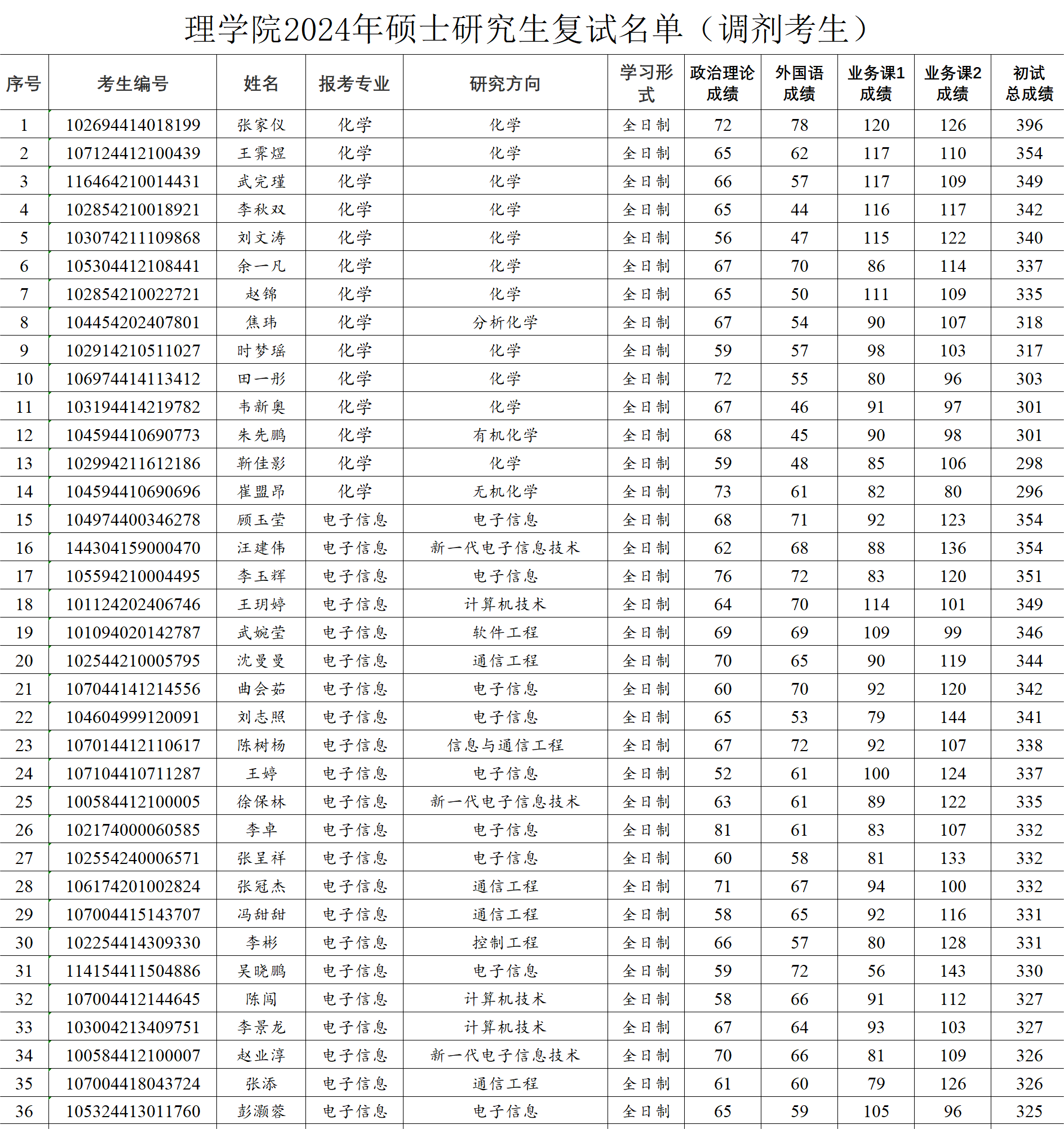中文成人视频 2024年硕士研究生复试名单(调剂考生)