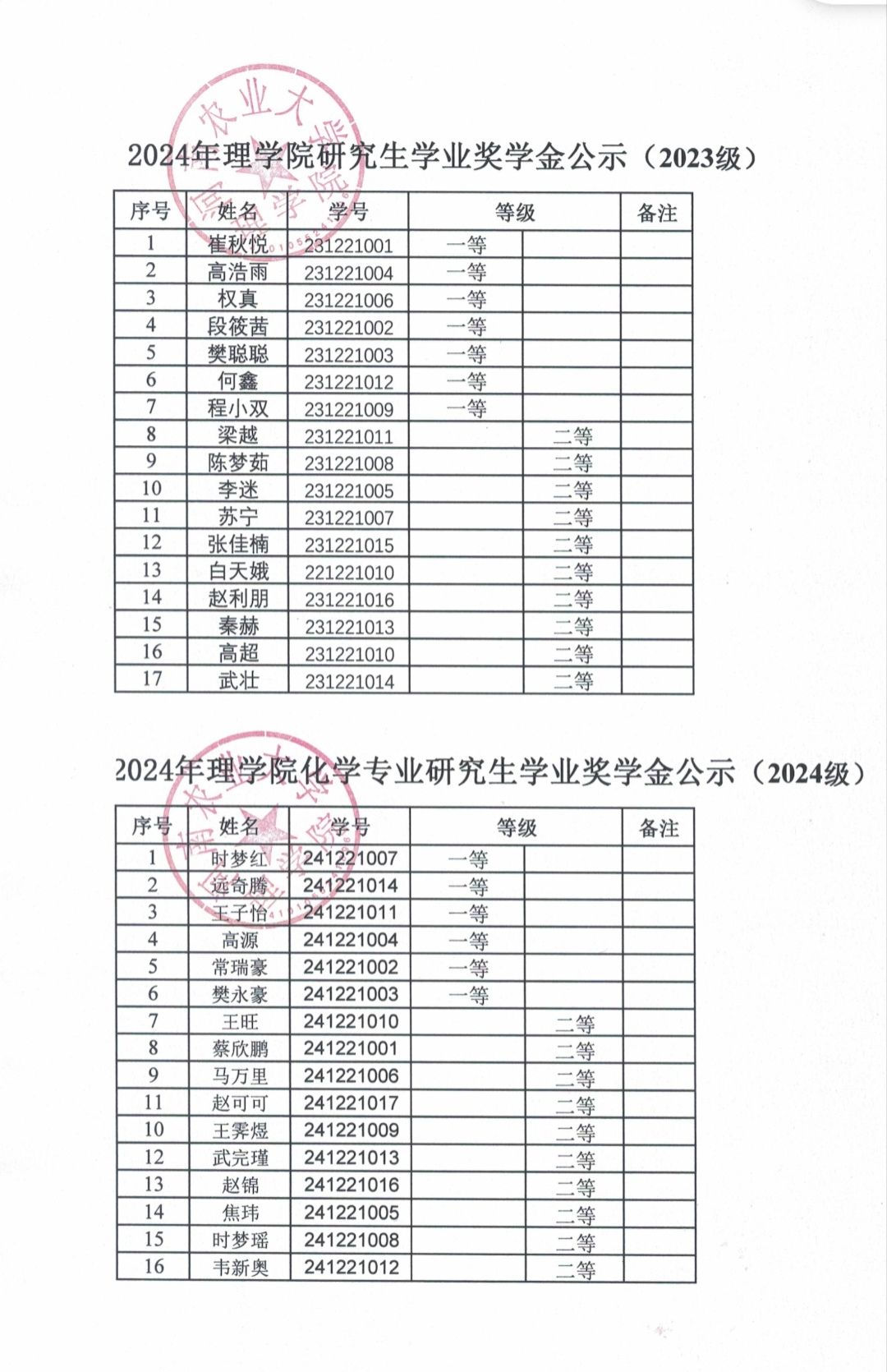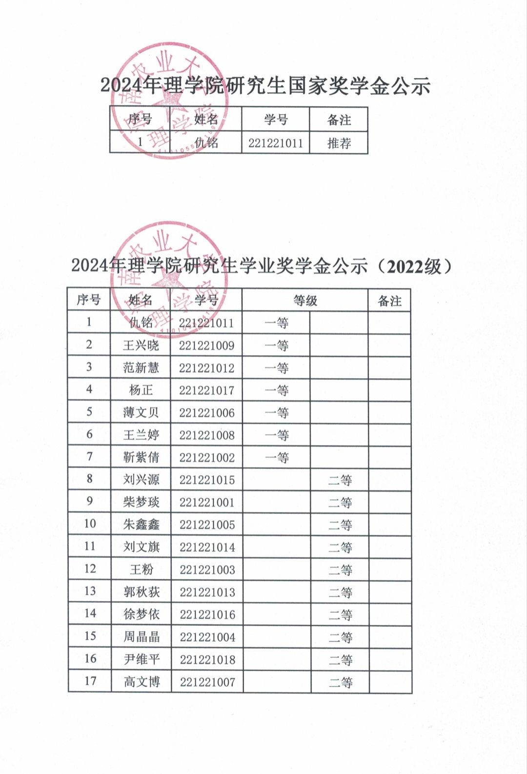 根据《河南农业大学关于做好2024年研究生国家奖助学金评审发放工作的通知》和《河南农业大学研究生奖助学金管理办法》(农大研〔2024〕3号)文件精神,按照《中文成人视频 2024年研究生奖学金评定细则》的规定,现将研究生奖学金评审结果予以公示。