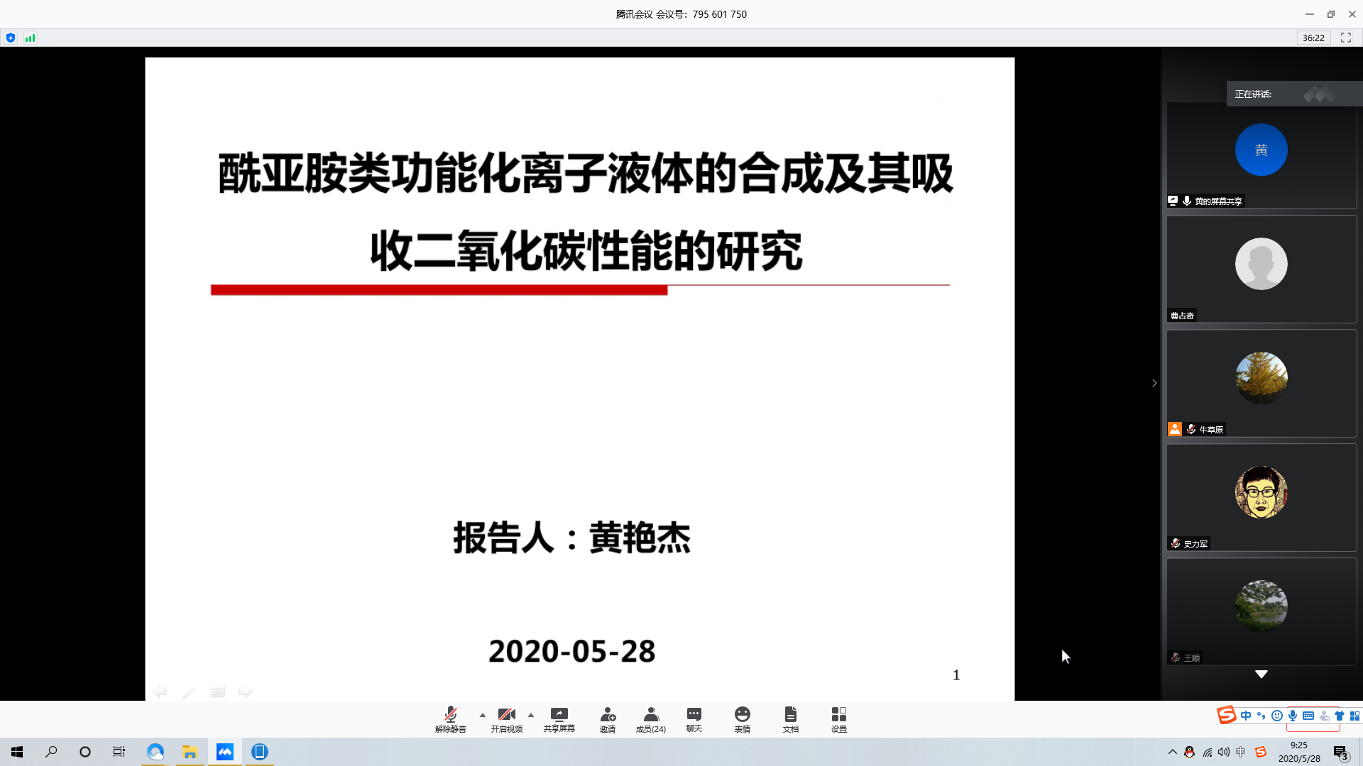 2020年5月28日上午,黄艳杰博士在腾讯会议(ID: 795 601 750)作了题为“