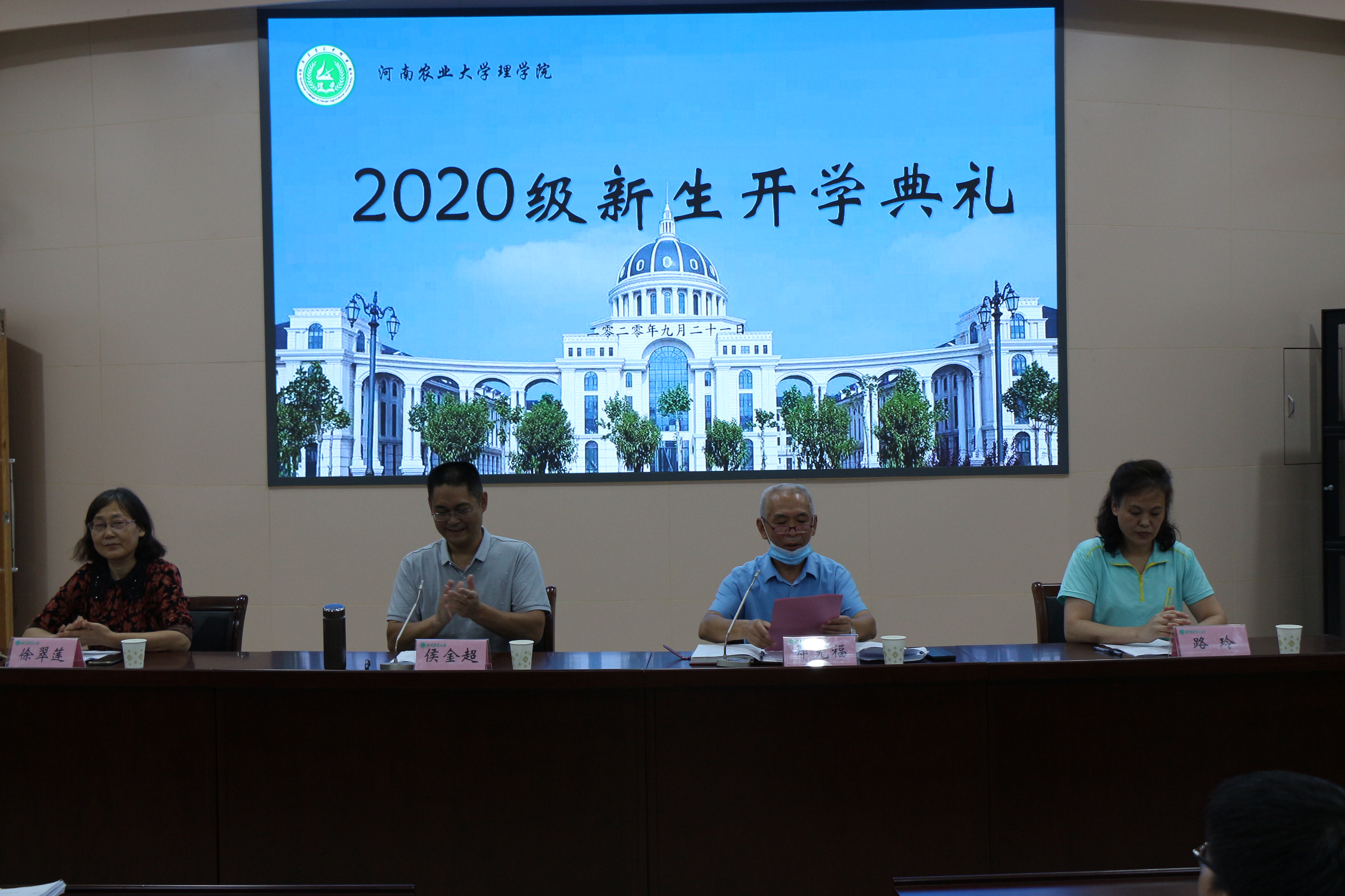 学院新生代表、老生代表、教师代表先后发言。徐翠莲介绍了学院专业情况、师资力量、科研实力等。路玲从生活、人身、财产、消防及疫情防控五个方面强调了安全问题。