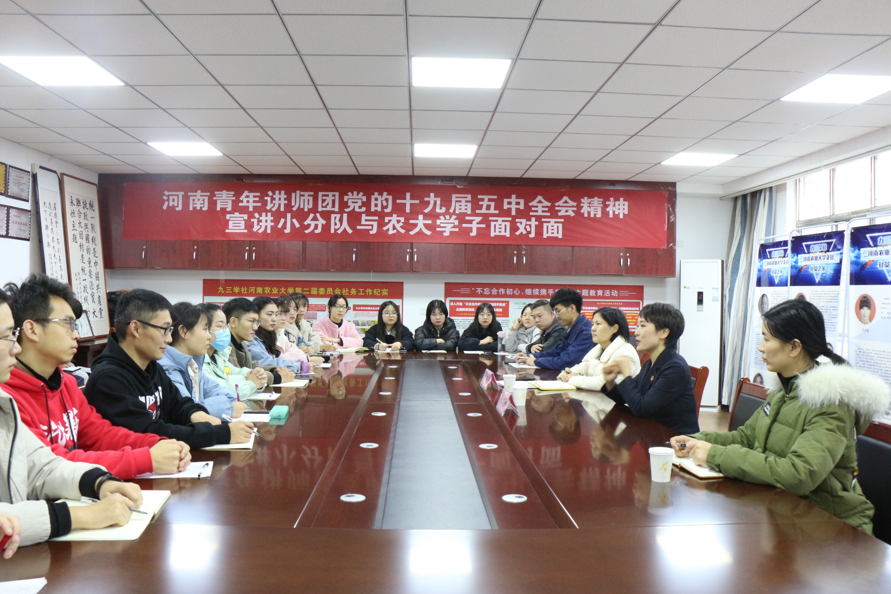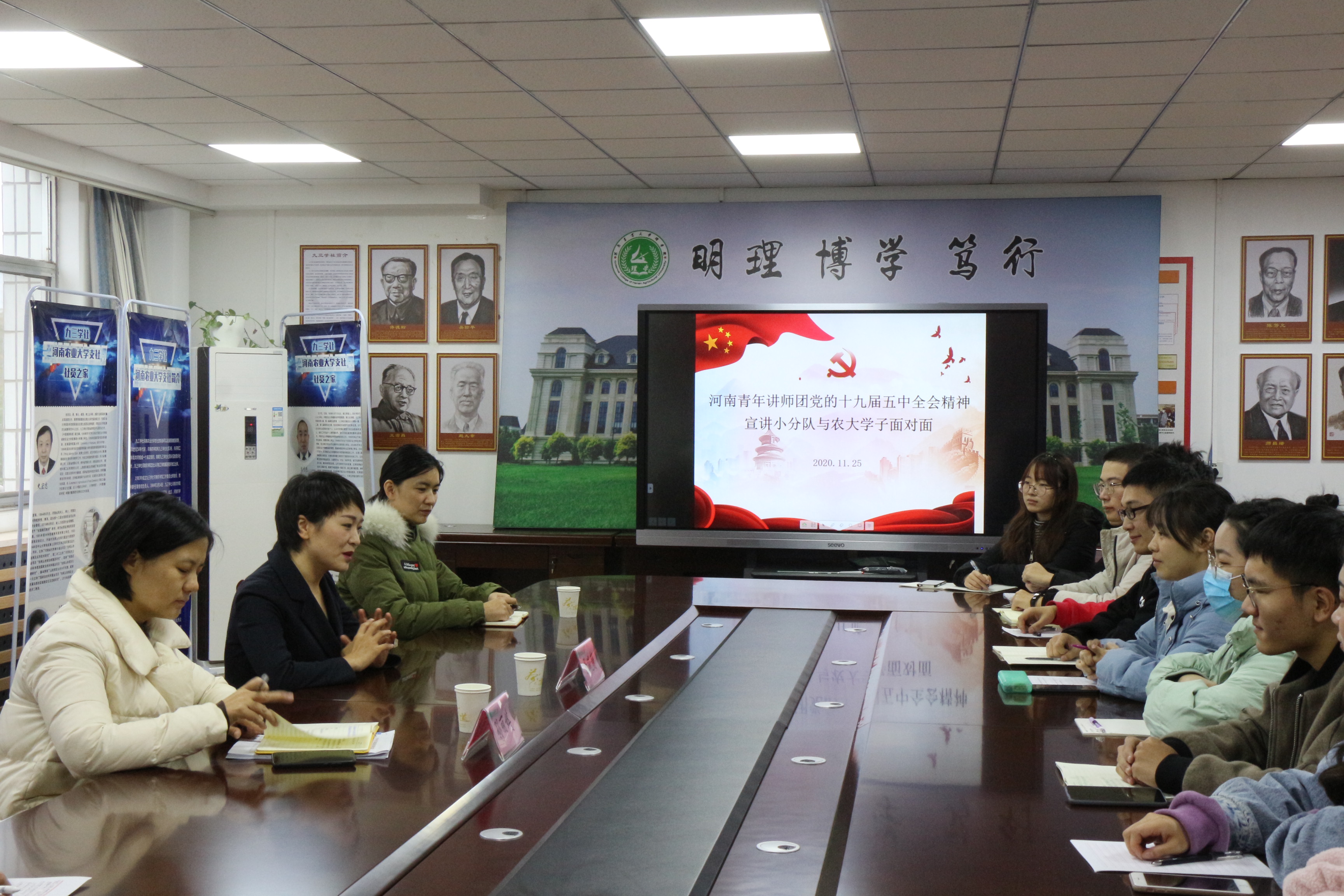2020年11月25日,河南青年讲师团成员张晓静深入河南农业大学宣讲党的十九届五中全会精神,在文化路校区20号楼415会议室同中文成人视频