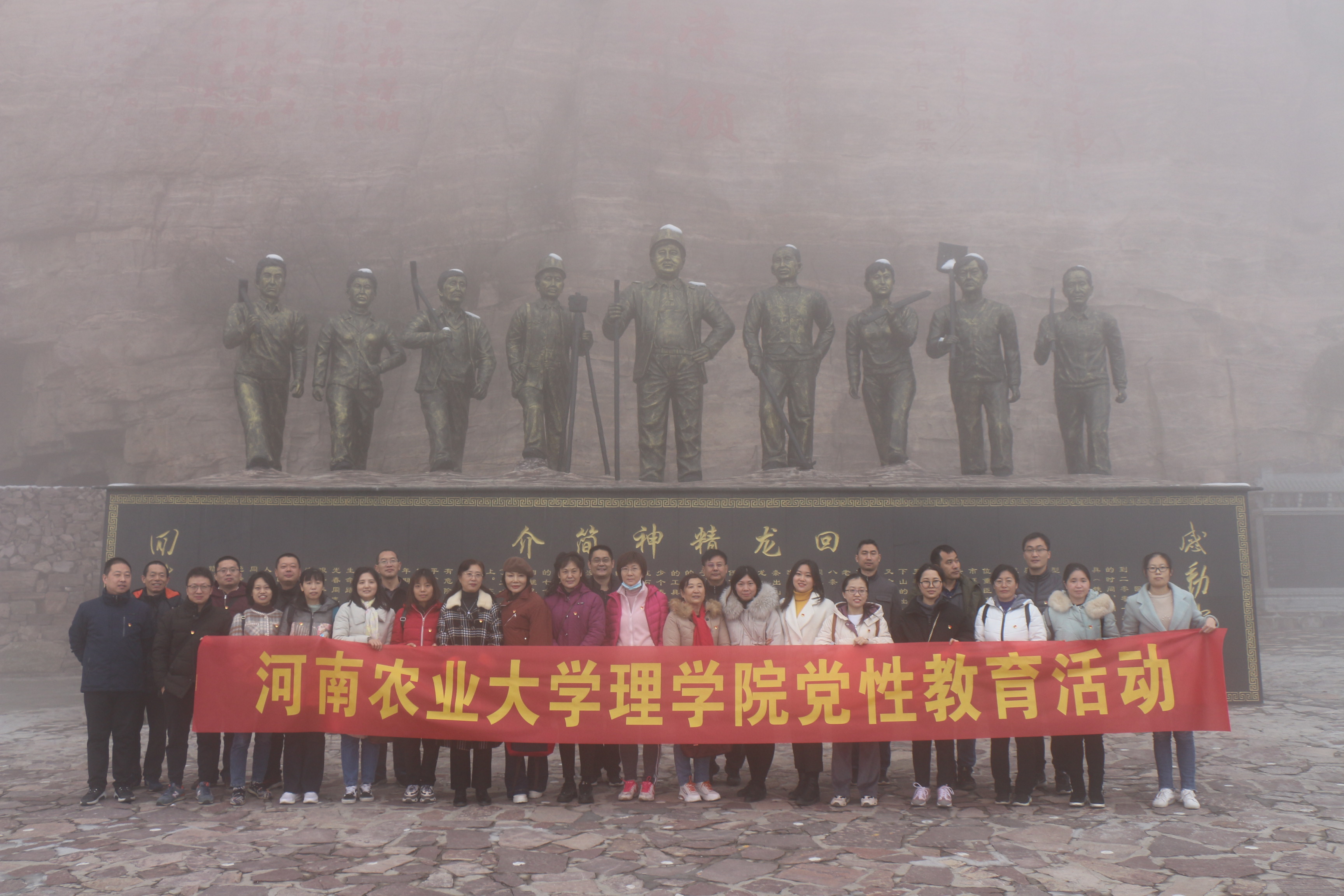 随后,教工党员来到位于太行山南麓深山区的辉县回龙村参观学习,怀着无比崇敬的心情参观了回龙挂壁公路,了解了回龙村党支部书记张荣锁率村民艰苦奋斗、感天动地的历史,感受了太行山上的人工奇迹。