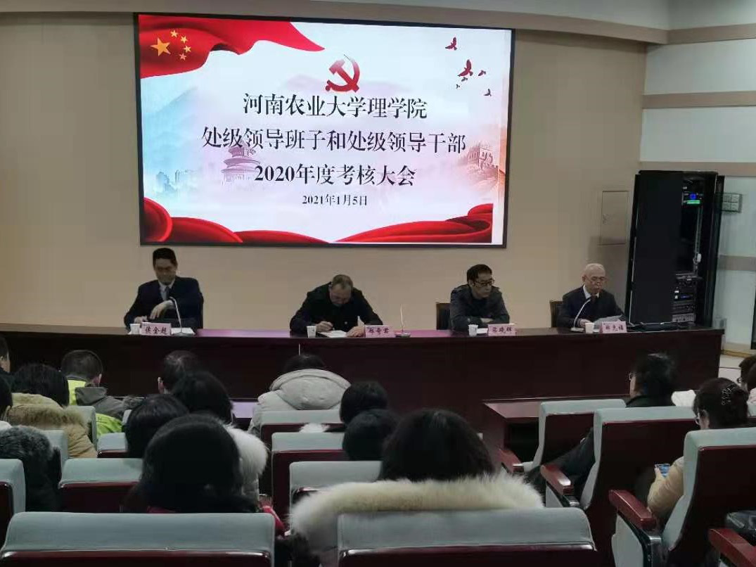 1月5日下午,理学处级领导班子和处级领导干部2020年度考核大会在文化路校区300人报告厅举行。学院全体教职工参加了大会。校党委考核组,正处级组织员郑奇君和副处级组织员梁晓辉出席会议,并宣读校党委关于年度考核有关要求。