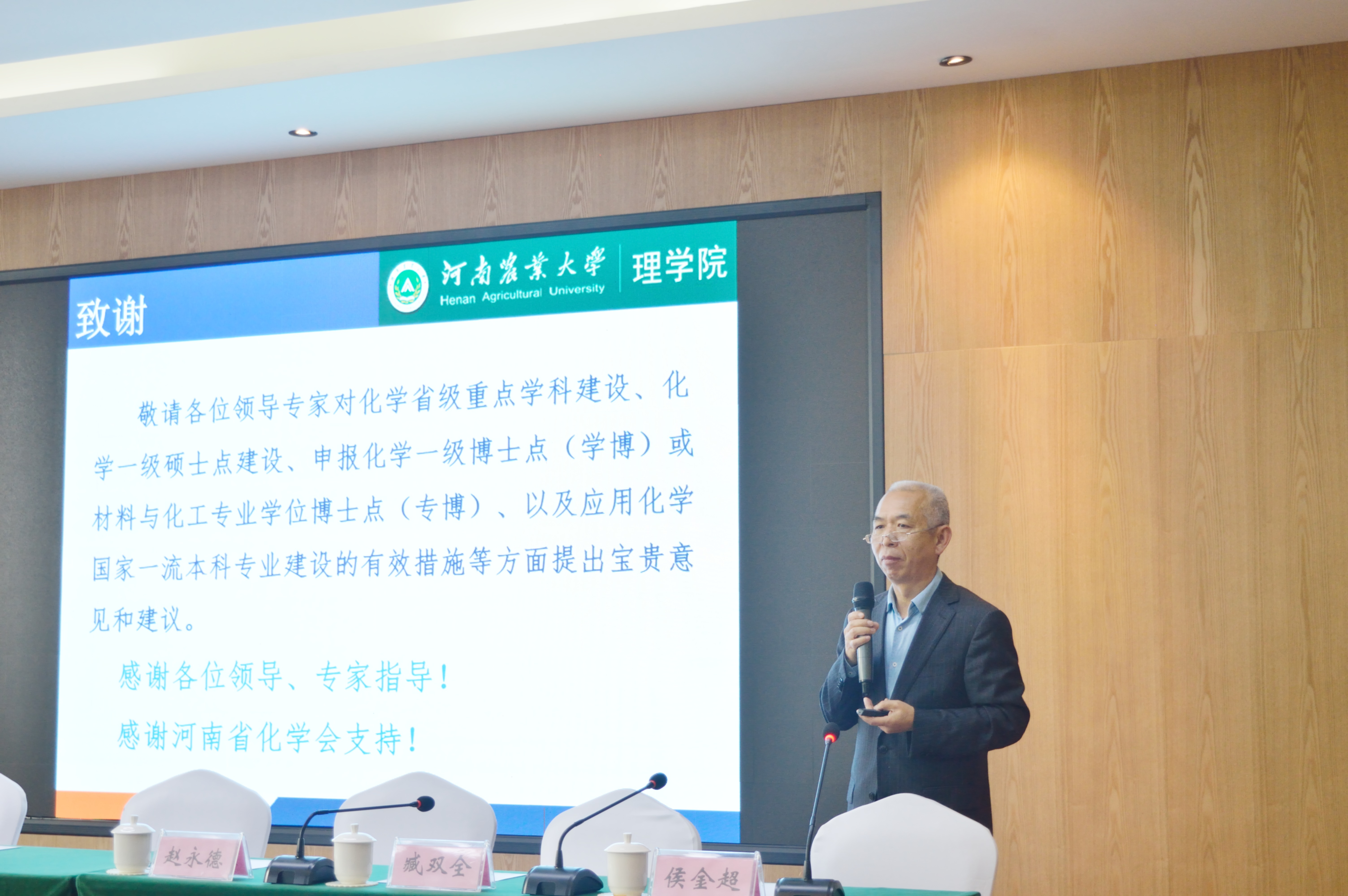 杨喜田代表学校向参加会议的专家们表示热烈欢迎,对他们百忙之中为河南农业大学化学学科“问诊把脉”表示感谢,并介绍了学校办学历程、人才队伍、学科建设等基本情况。他希望通过此次论证会让大家对河南农业大学化学学科有一个充分的认识,学校将紧紧围绕国家一流专业建设的大好机遇,查缺补漏,真正使化学学科有一个质的提升。他希望与会各位专家在本次论证会中多提宝贵建议和意见,为化学学科建设把脉会诊,为科学制定化学学科发展规划传经送宝,助力河南农业大学化学学科高质量发展。