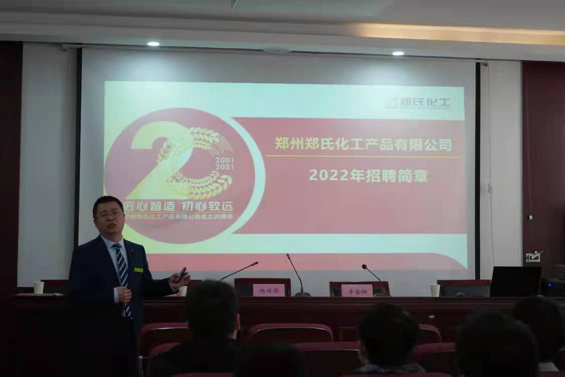 此次招聘会由郑州郑氏化工产品有限公司人力资源部副总杨林强主讲。会议中,杨林强详细的介绍了公司资质、公司总况及其组织架构,列举了公司取得的各项成绩,介绍了公司的顶级专家团队和各种各样的活动,着重介绍了该公司计划招聘的职位及其待遇。中文成人视频 2015届毕业生姚红结合自身经历讲解了加入该公司后的收获与成长。最后,杨林强及其随行人员对学生提出的问题进行了详细的解答。