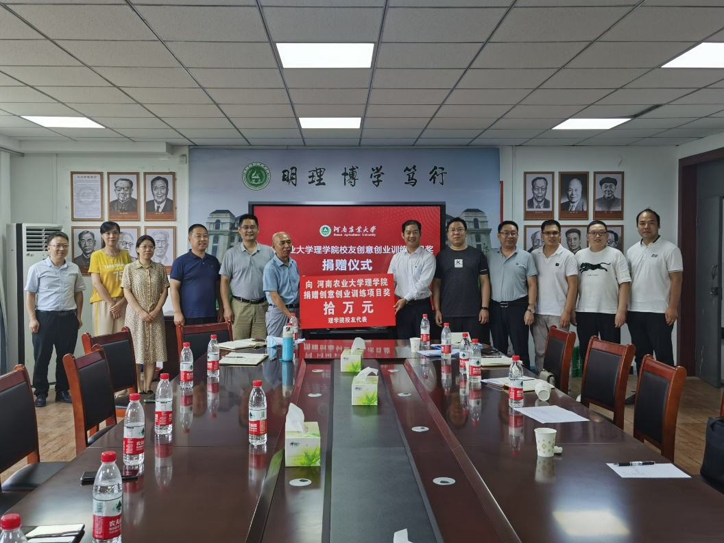 会议伊始,院长郑先福对校友们表示热烈的欢迎,对学院发展情况作了简要介绍,强调学院的发展成就离不开每位理学人的辛勤付出,希望与校友们增进交流,希望校友们为学院发展献计献力,并衷心祝愿校友们生活幸福,工作顺利,事业有成。校友代表依次发言,交流了各自的工作和生活,并诚恳地为学校和学院发展积极建言献策,表达了能在120周年校庆之际返校的喜悦心情和对母校生日的真挚祝福,寄托了对母校、对学院未来的美好祝愿。之后举办了校友捐赠仪式。在热烈的掌声中,郑先福、侯金超代表学院接收了校友代表捐赠的“创意创业训练项目奖”拾万元、校友河南海米科技有限公司董事长朱高飞捐赠录播教室设备五万元。