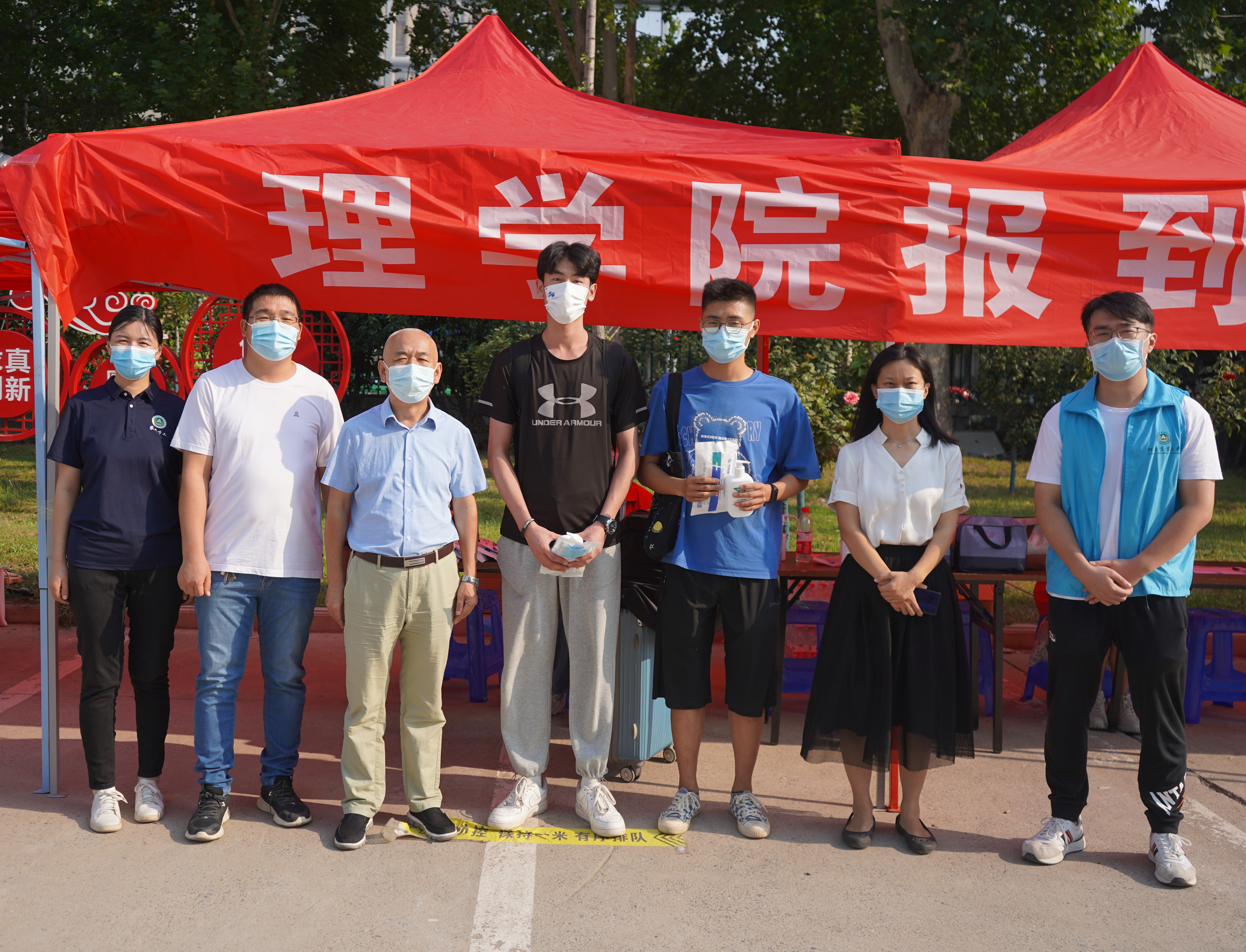 早上,院党委书记王照兰、院长郑先福深入学生返校一线,分别到文化路校区、二区、桃李园大本营检查指导学生返校报到情况,慰问一线工作人员和返校学生。院党委副书记李丹、副院长李辉、副院长谢黎霞分别带领团委辅导员和学生志愿者们精心布置大本营、摆放桌椅、准备防疫物资,各司其职、有条不紊,准备为即将进入校园的同学们保驾护航。返校学生按照预先制定的错峰安排,陆续抵达学校门口。报道现场,学生们佩戴口罩,在工作人员的指引下,完成查验48小时内核酸检测阴性证明、健康码行程码核验、体温检测等程序,携带学院发放的爱心防疫物资,有序完成报到手续。整个流程井然有序、纹丝不乱。