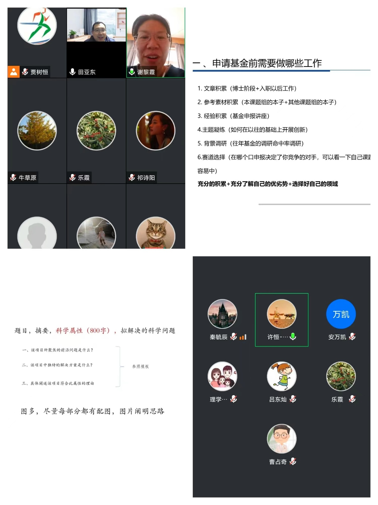 学院老师王亚玲、秦毓辰为参会人员做经验交流专题报告。他们结合自身的申报实战经历、撰写申报书总体思路、立项依据与研究内容、研究基础等方面,提出了中肯的建议。