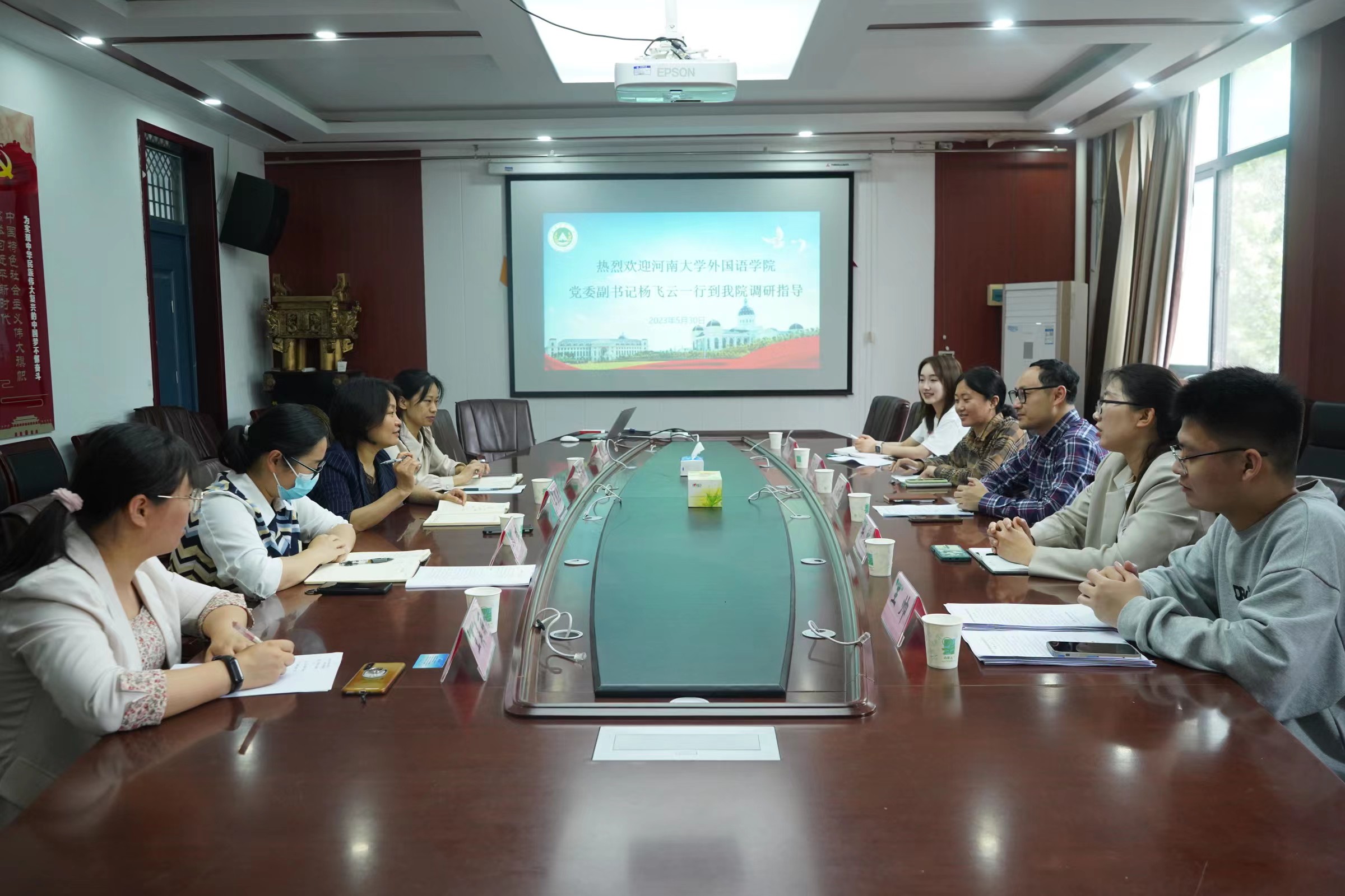 本网讯(通讯员 张爽 图片 刘兵兵) 5月30日上午,河南大学外语学院党委副书记杨飞云、团委书记田林涛一行5人来中文成人视频 开展学生工作调研交流活动。中文成人视频 党委书记王照兰、党委副书记李丹、团委书记邓瑛、正科级组织员孙晴及全体辅导员参加调研座谈会。