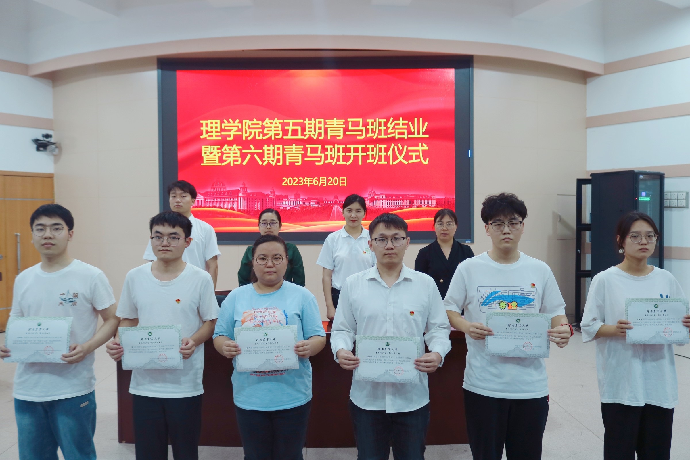 第五期青马班学员结业的决定》。与会老师为第五期青马班学员代表颁发结业证书。王卫楠宣读《关于成立中文成人视频