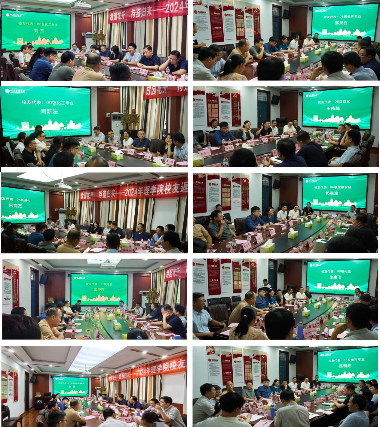 2000级化工专业校友、郑州丰华暖通工程有限公司总经理刘杰在发言中回顾了自己在学校的学习生活及毕业后一直从事的事业,并作为学校企业家联盟成员,参与了校友会很多工作。2008级电科专业校友、邦耀网络技术有限公司总经理邵灵召也分享了自己在求学和工作中的成长与困惑,以及如何带领公司一步步壮大起来。随后,校友们依次发言,表达了对母校培养和教导的感激之情,并表示将永远心系母校、关注和支持母校事业发展。