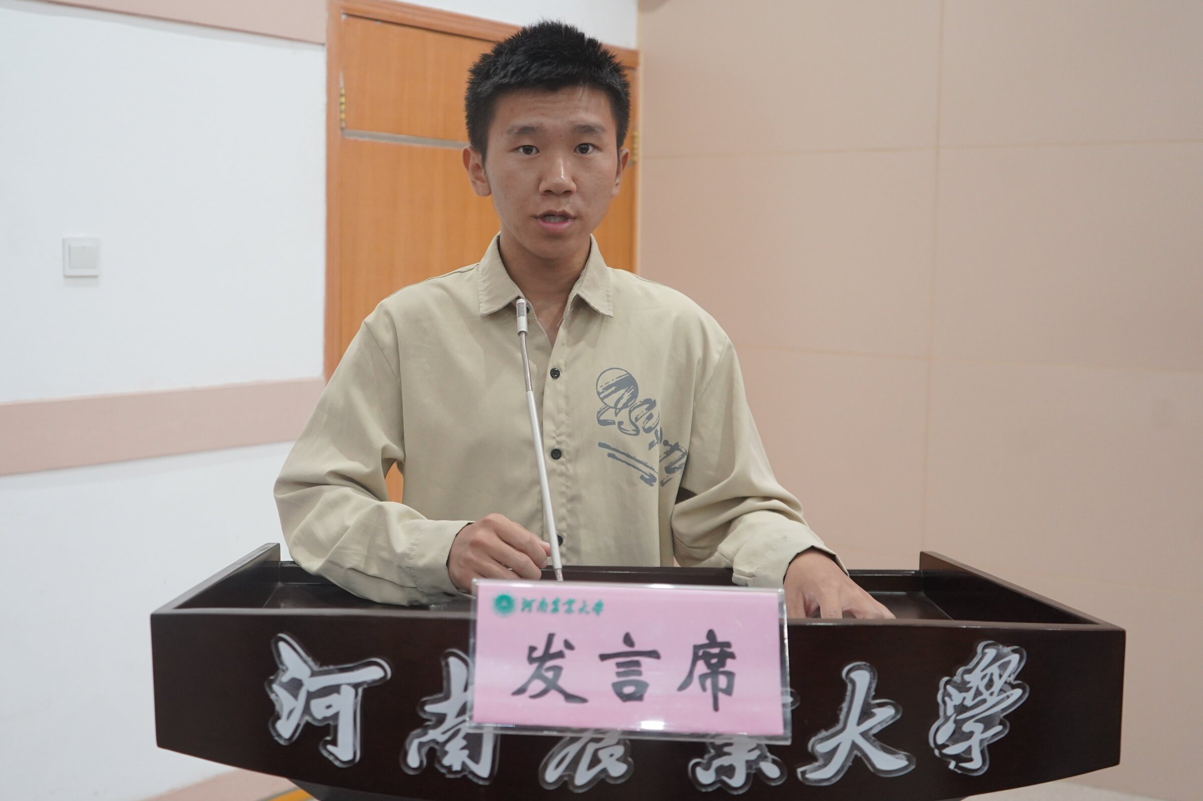 2024级电子信息专业徐保林作为研究生代表发言,他以河南农业大学“明德自强,求是力行”的校训为引,倡导大家树立正确的价值观,以高尚的道德情操为指引,不断超越自我,探索学术的未知领域,以实践为笔,书写青春的华章。他的话语如同航标,引领着学子们坚守初心,砥砺前行。