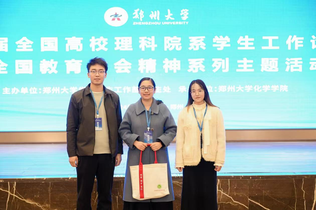 团委书记邓瑛,团委老师王卫楠,付欠丽赴郑州大学参加第八届全国高校理科院系学生工作论坛暨学习贯彻全国教育大会精神系列主题活动。