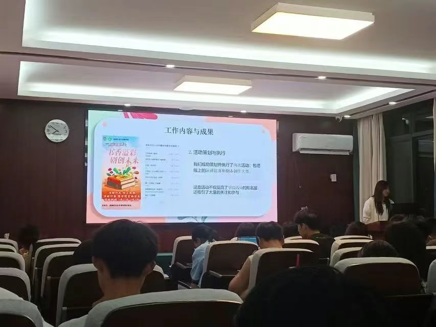会上,各部门23级干事率先进行年度总结汇报。办公室针对本学年已举办活动展开全面总结,回顾日常工作推进情况,并对工作中出现的失误深入复盘反思。