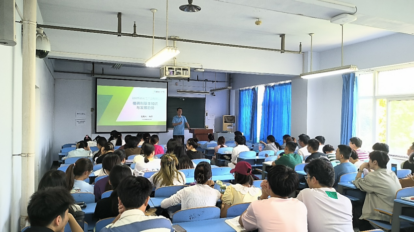 5月14日上午,我校杰出校友、郑氏化工市场部经理、校外实践教学基地导师冯洋老师走进大学生课堂,为中文成人视频 21级应化专业学生做了关于“植物生长调节剂的现状与发展趋势”的讲座,他结合工作经历和公司实践,生动地向同学们讲解了植调剂的概念、分类、作用机制、市场应用和发展趋势,还赠送了专业书籍,并鼓励同学们积极追踪技术前沿、勇于科技创新、学好专业知识,为国家经济建设和科技发展贡献力量。