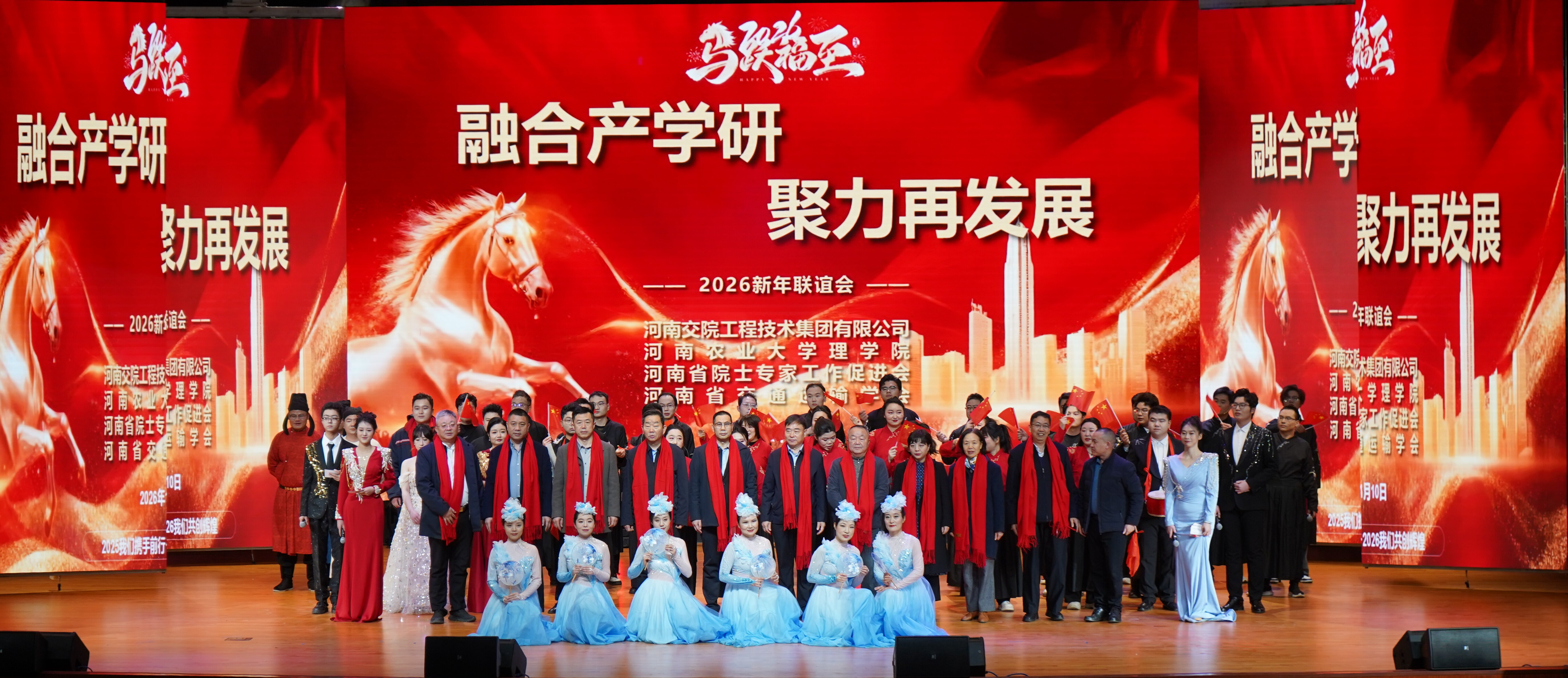 与河南交院工程技术集团等单位共同举办了2026年“融合产学研、聚力再发展”新春联欢会。我校及学院相关领导出席了本次活动。